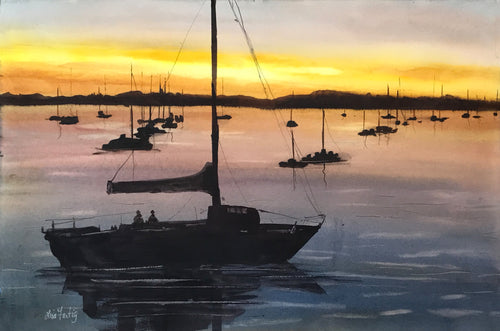 Sailing on the Lake at Sunset