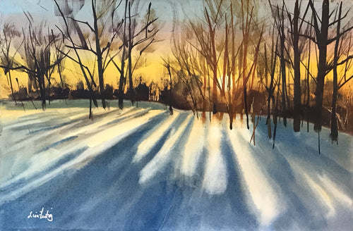 Sunset in the Snowy Woods